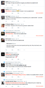 Even if a statement like “… [is] a work of art” sweeps the Twitterverse on a particular day or over the course of a week (April 15, 2016), someone spent the time crafting a public persona and was able to authenticate that statement and help make it noteworthy for millions. The masses are fickle, but the artist can be committed to innovatio